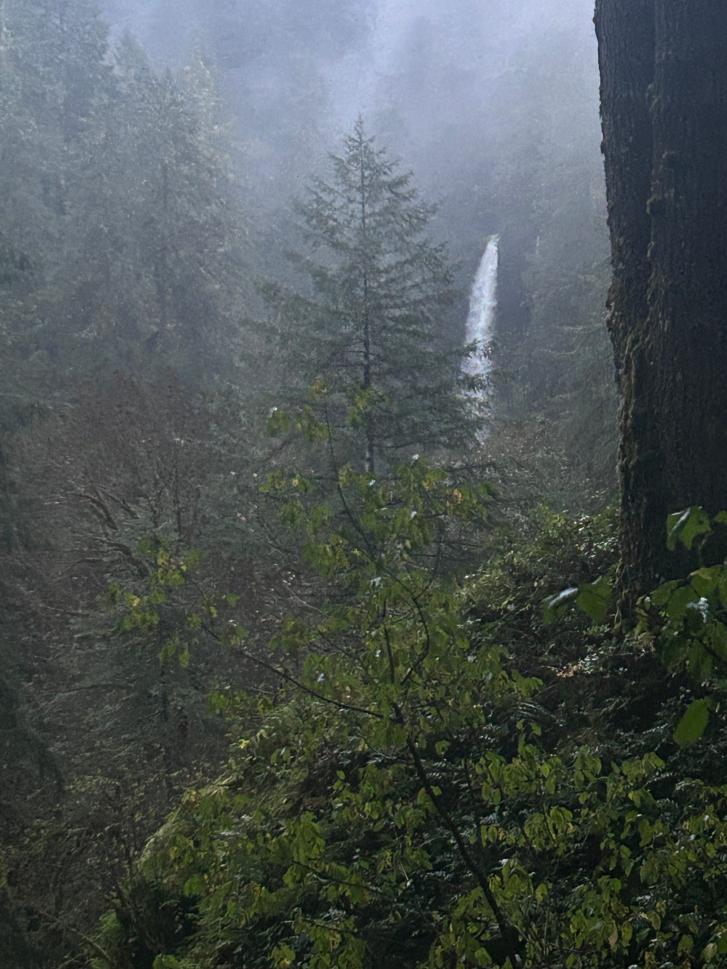 This is a fun one we’re about to step into a darker part I was think of that John Denver song in the Forest primeval, I really didn’t even know what a forest primeval was for a long time, and I really didn’t understand the meaning of the word primeval until I touched it and then it became very clear that I have nothing to relate this back other than the trail is drying up - the sun is out and I’m getting closer and closer to the Falls.